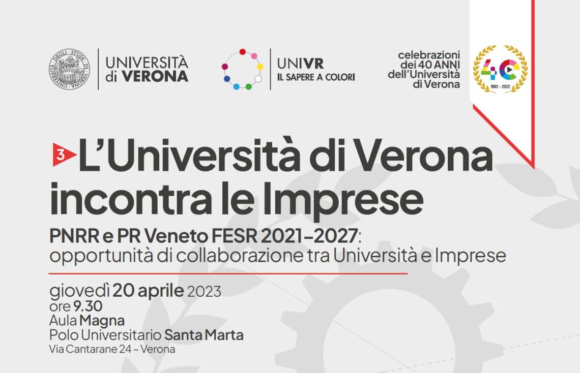“L’Università di Verona incontra le Imprese: PNRR e PR Veneto FESR 2021−2027: opportunità di collaborazione tra Università e Imprese“