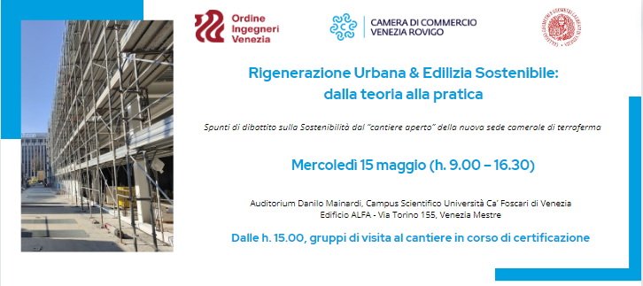 La Camera di Commercio di Venezia Rovigo apre le porte del “cantiere aperto” della nuova sede di terraferma, in occasione dell’incontro di presentazione rivolto alle istituzioni del territorio e agli operatori economici della filiera dell’edilizia green, teso a condividere il percorso adottato per la realizzazione di un edificio ispirata ai valori dello sviluppo sostenibile e nel rispetto dei dettami del Ministero dell’Ambiente e della Sicurezza Energetica (Criteri Ambientali Minimi per l’Edilizia), nell’ambito dell’iter di certificazione in conformità al protocollo energetico ambientale rating system internazionale LEED BD+C.