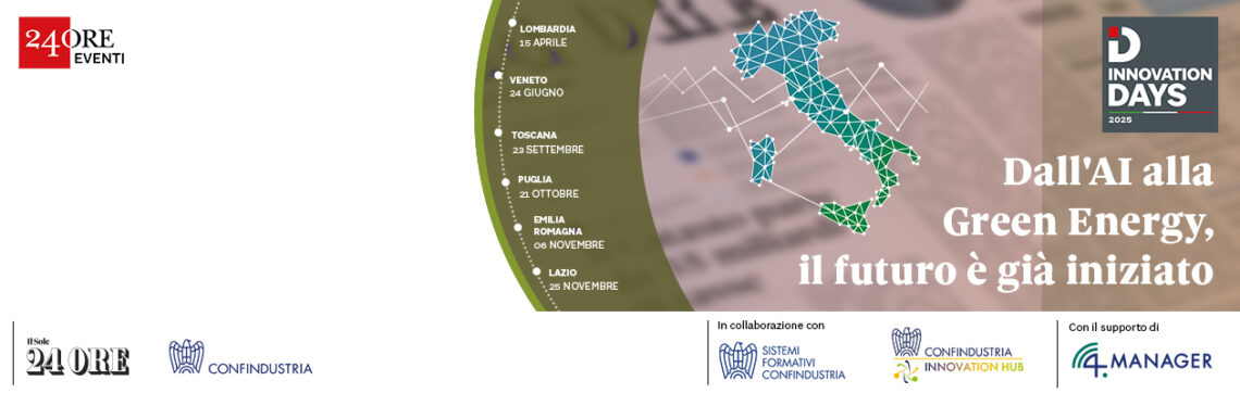 Riparte il Roadshow italiano che, grazie a tematiche all’avanguardia, si conferma come uno degli appuntamenti più rilevanti e strategici pensato per supportare la crescita e l’innovazione delle imprese italiane. Organizzato da Confindustria e Il Sole 24 Ore con la collaborazione di Sistemi Formativi Confindustria, Confindustria Innovation Hub e il supporto di 4.Manager, l’evento si configura come un’opportunità imperdibile per le aziende italiane che desiderano affrontare le sfide del futuro con strumenti concreti e strategie vincenti per competere con successo nel panorama globale.